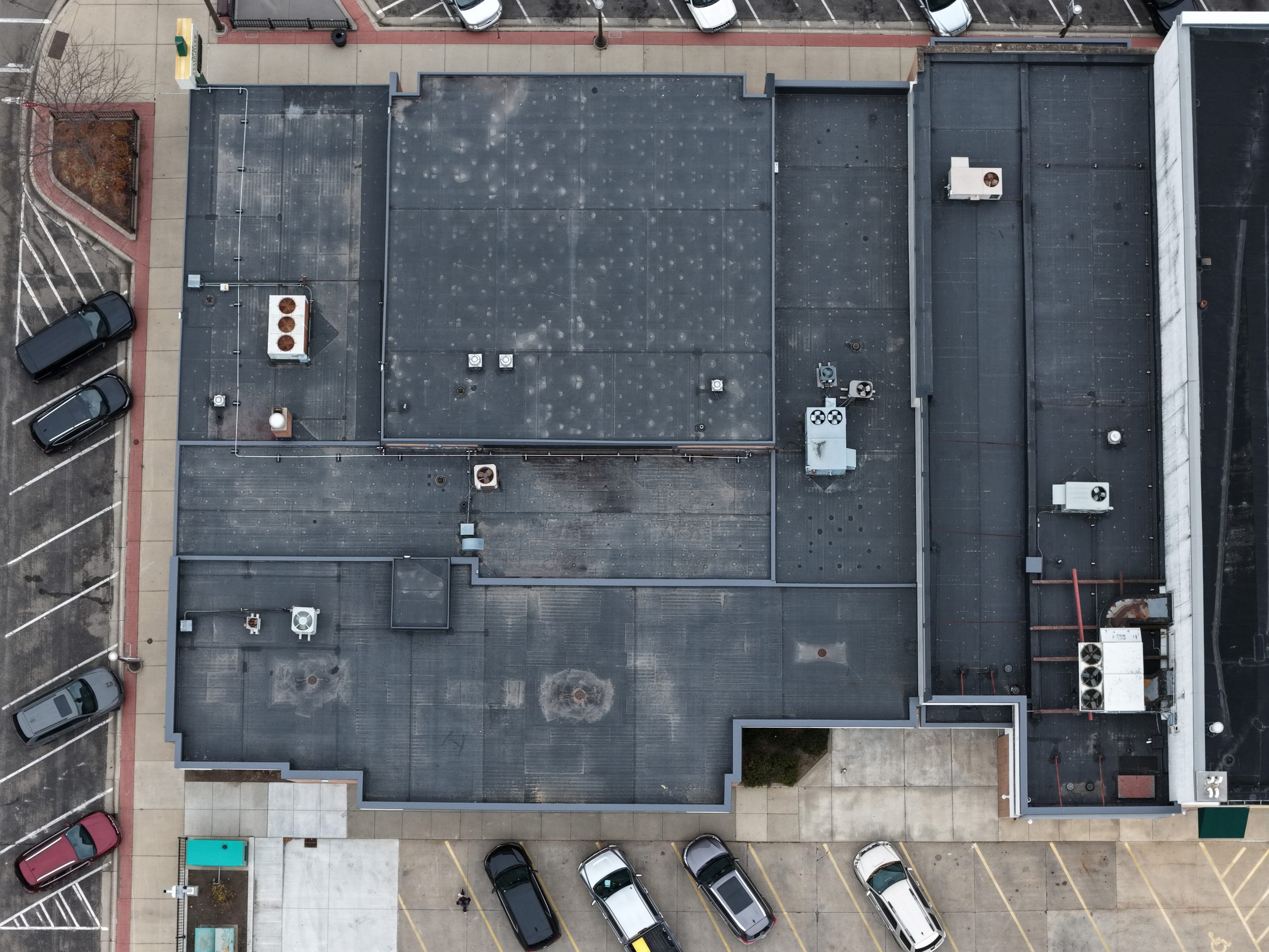 The entire scope of this project included a full tear-off, followed by two layers of 2.6” ISO insulation, mechanically fastened to the deck. To help with drainage, Qs were set around the drains to direct water to the sump areas. A 60-mil adhered EPDM membrane was applied, providing a reliable, watertight seal across the roof.