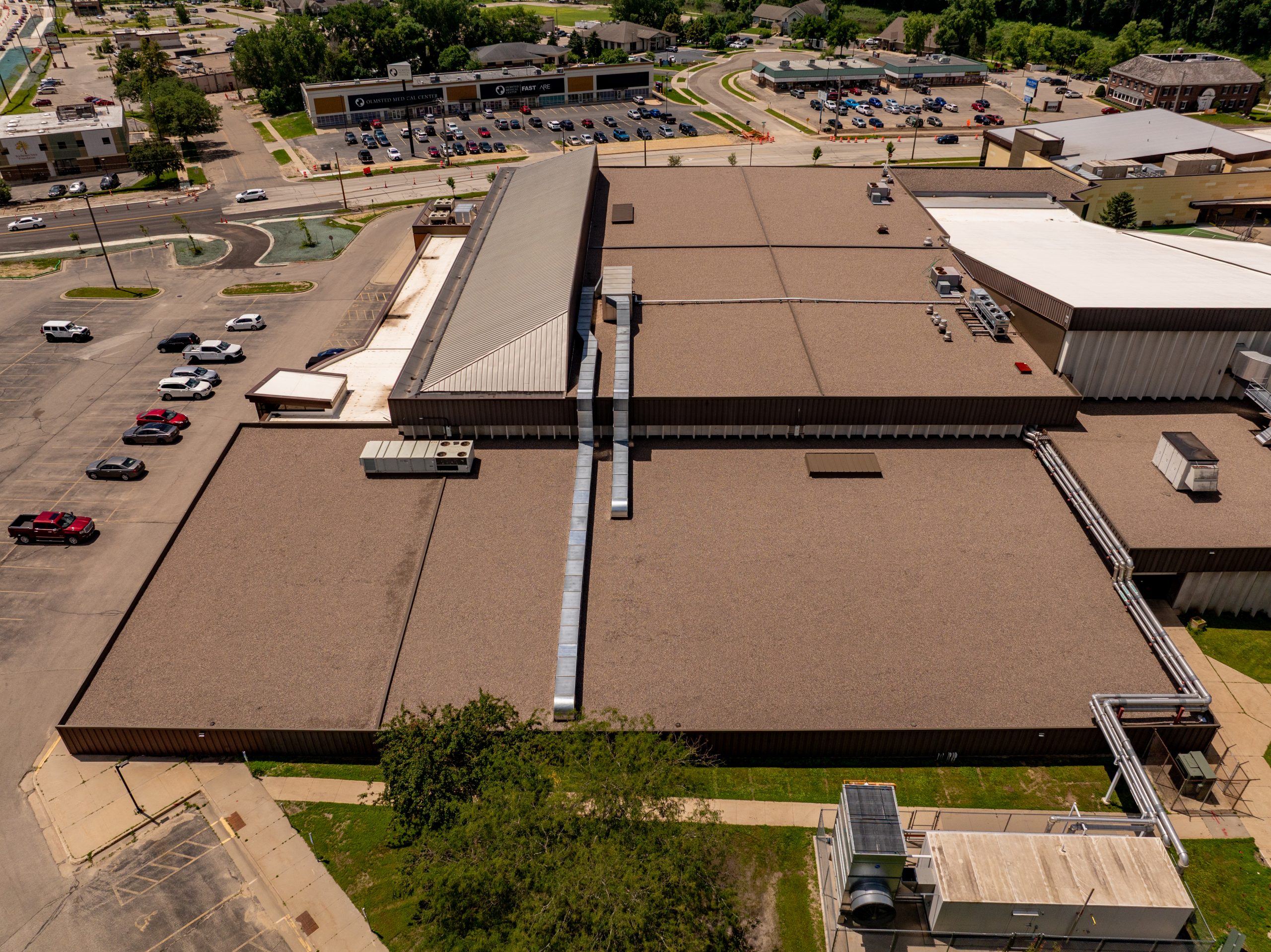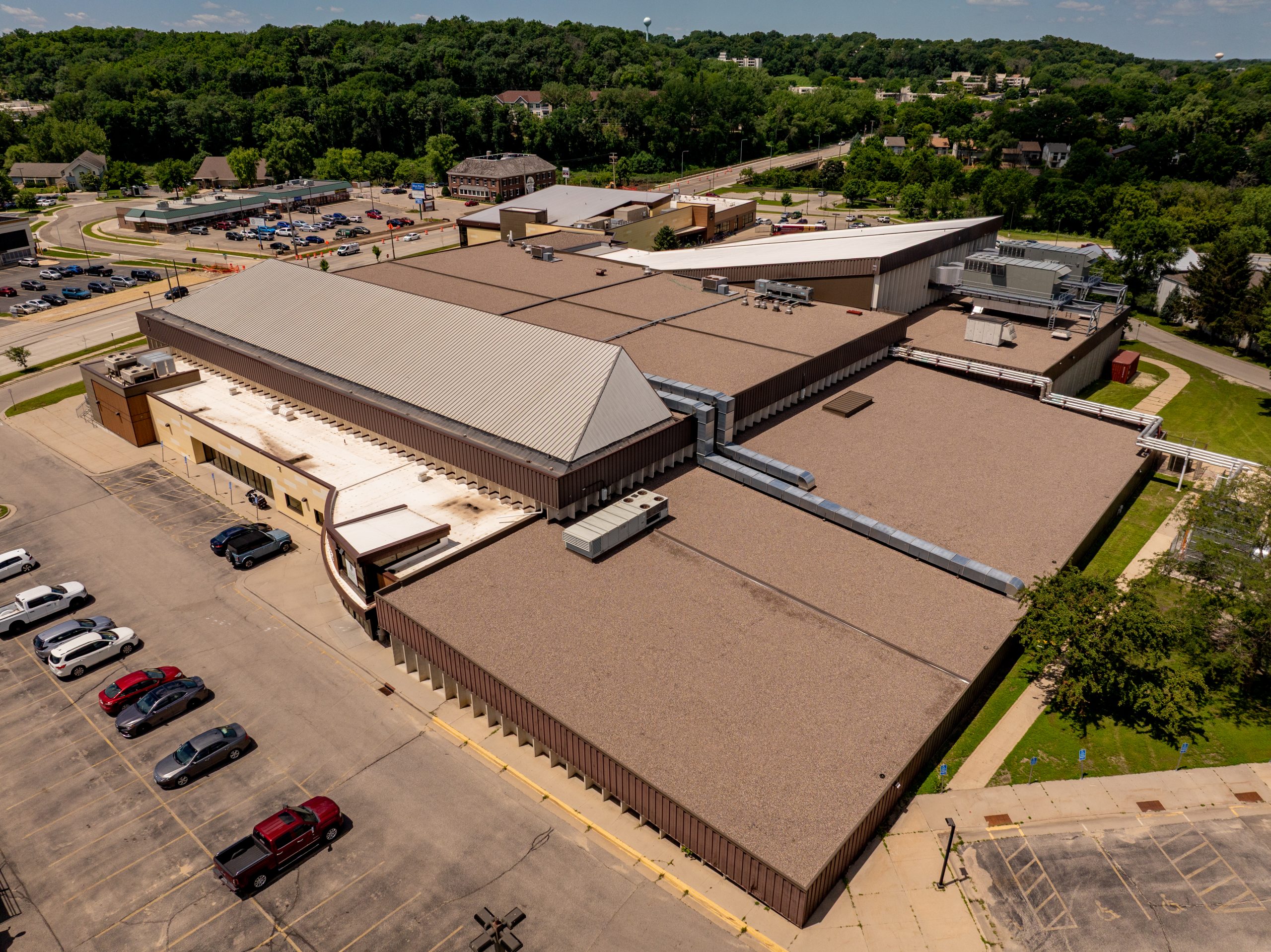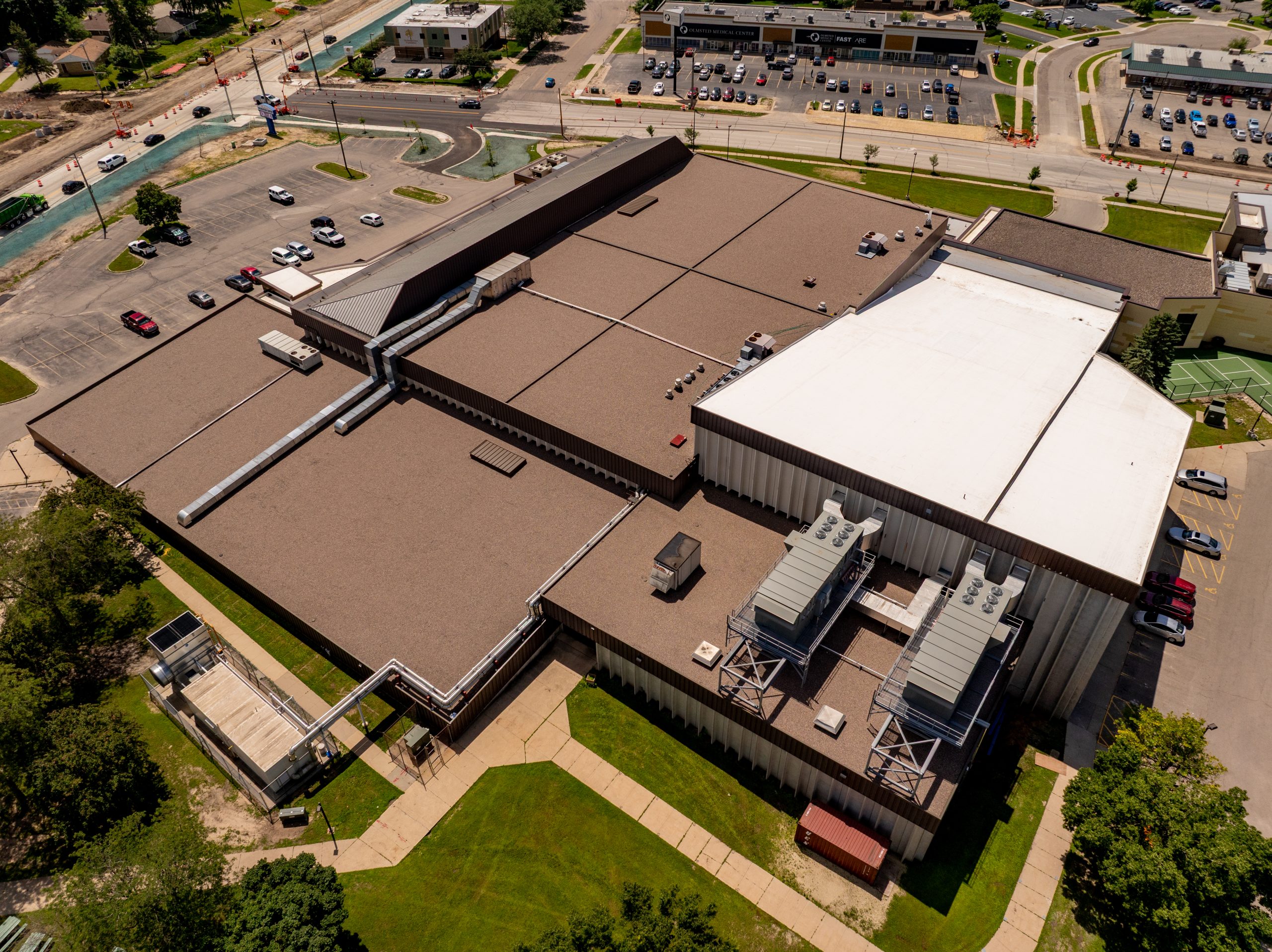 Schwickert’s took on a large roofing project at the Rochester Rec Center, covering 77,000 square feet across both the main rink and the pool areas. The job included two distinct systems for each section of the facility.